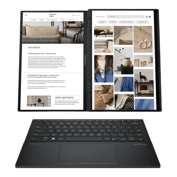 ASUS ZenBook DUO UX8406CA-OLED009WS Gaming Laptop (Intel Core Ultra 9 285H – 32GB Ram – M.2 NVMe 2TB – Intel Arc Graphics – 14.0 Inch 3K Touchscreen 120Hz – Stylus ASUS Pen – Laptop Sleeve – Win11) – Inkwell Grayلاب توب